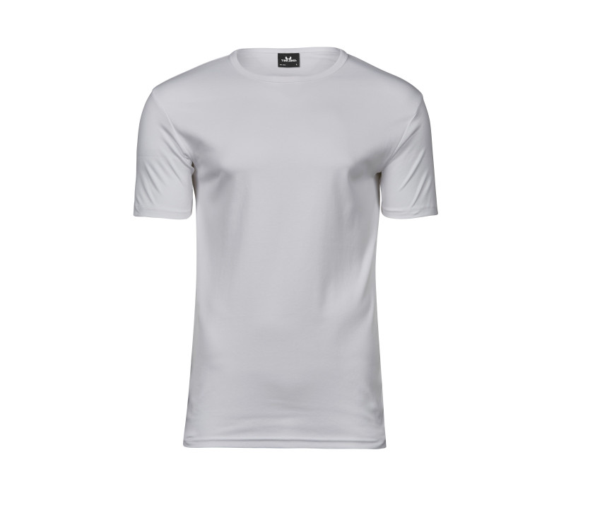 Tee-shirt homme - Coupe ajustée. Col en bord côte étroit. Double couture. Lavé aux enzymes.