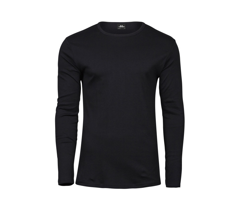 Double couture. Lavé aux enzymes et à la silicone pour un toucher doux et une meilleure élasticité. Coupe ajustée. Pré-rétréci. Lavable à 60°C.