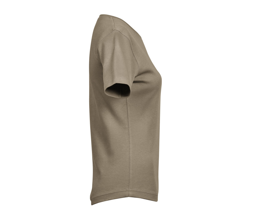 Tee-shirt femme - Coupe ajustée. Col en bords côte. Double couture. Lavé aux enzymes.