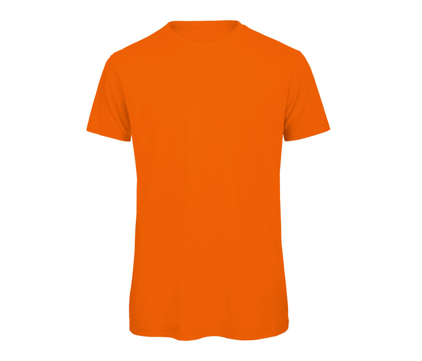 Tee-shirt homme coton bio ou bio en conversion. Coupe cintrée. Manches courtes. Coutures latérales. Doux au toucher. Col en côtes fines. Renfort d'épaule à épaule. Surface lisse pour une impression nette et précise.
