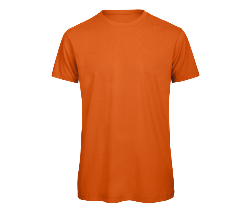 Tee-shirt homme coton bio ou bio en conversion. Coupe cintrée. Manches courtes. Coutures latérales. Doux au toucher. Col en côtes fines. Renfort d'épaule à épaule. Surface lisse pour une impression nette et précise.