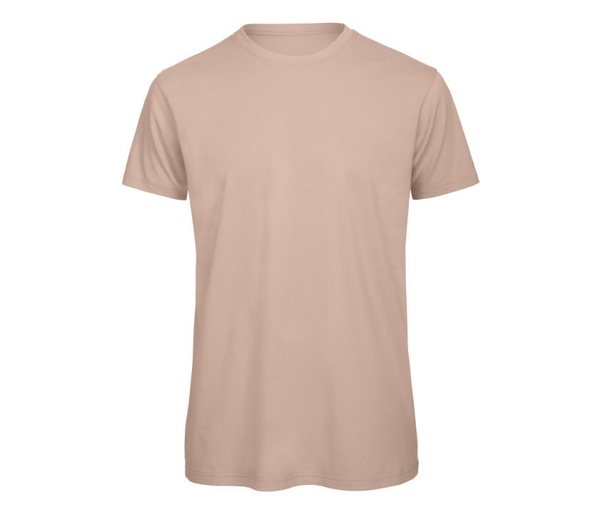 Tee-shirt homme coton bio ou bio en conversion. Coupe cintrée. Manches courtes. Coutures latérales. Doux au toucher. Col en côtes fines. Renfort d'épaule à épaule. Surface lisse pour une impression nette et précise.
