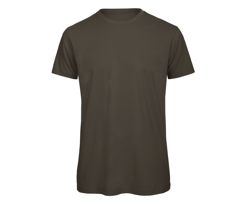 Tee-shirt homme coton bio ou bio en conversion. Coupe cintrée. Manches courtes. Coutures latérales. Doux au toucher. Col en côtes fines. Renfort d'épaule à épaule. Surface lisse pour une impression nette et précise.