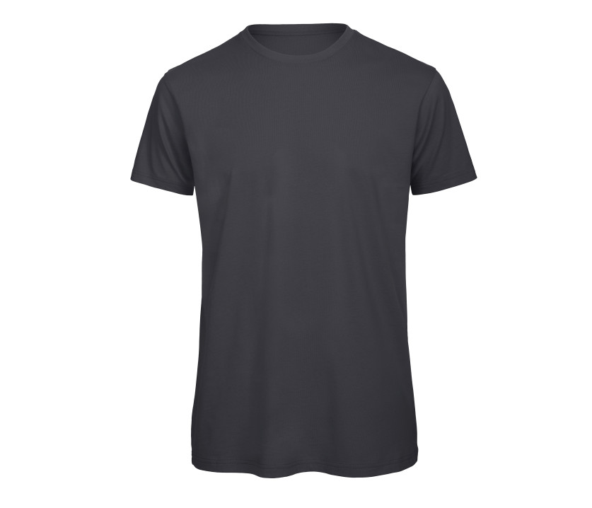 Tee-shirt homme coton bio ou bio en conversion. Coupe cintrée. Manches courtes. Coutures latérales. Doux au toucher. Col en côtes fines. Renfort d'épaule à épaule. Surface lisse pour une impression nette et précise.