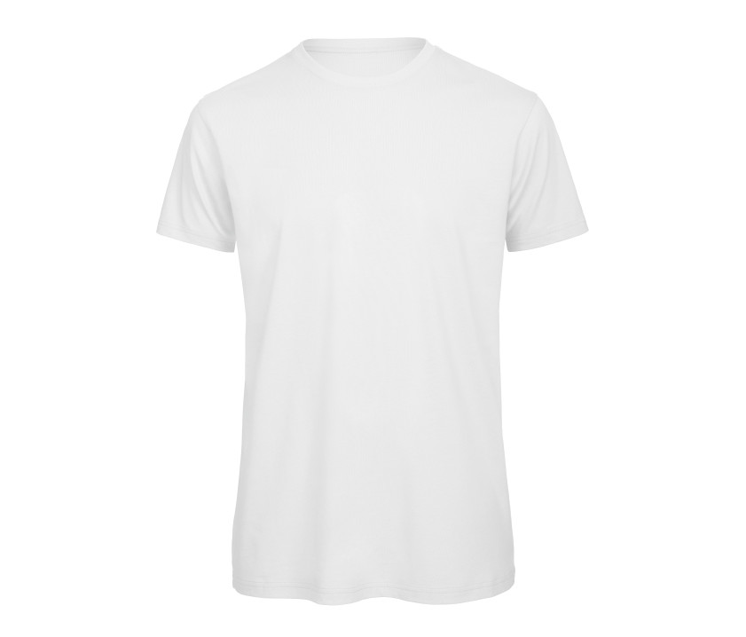 Tee-shirt homme coton bio ou bio en conversion. Coupe cintrée. Manches courtes. Coutures latérales. Doux au toucher. Col en côtes fines. Renfort d'épaule à épaule. Surface lisse pour une impression nette et précise.