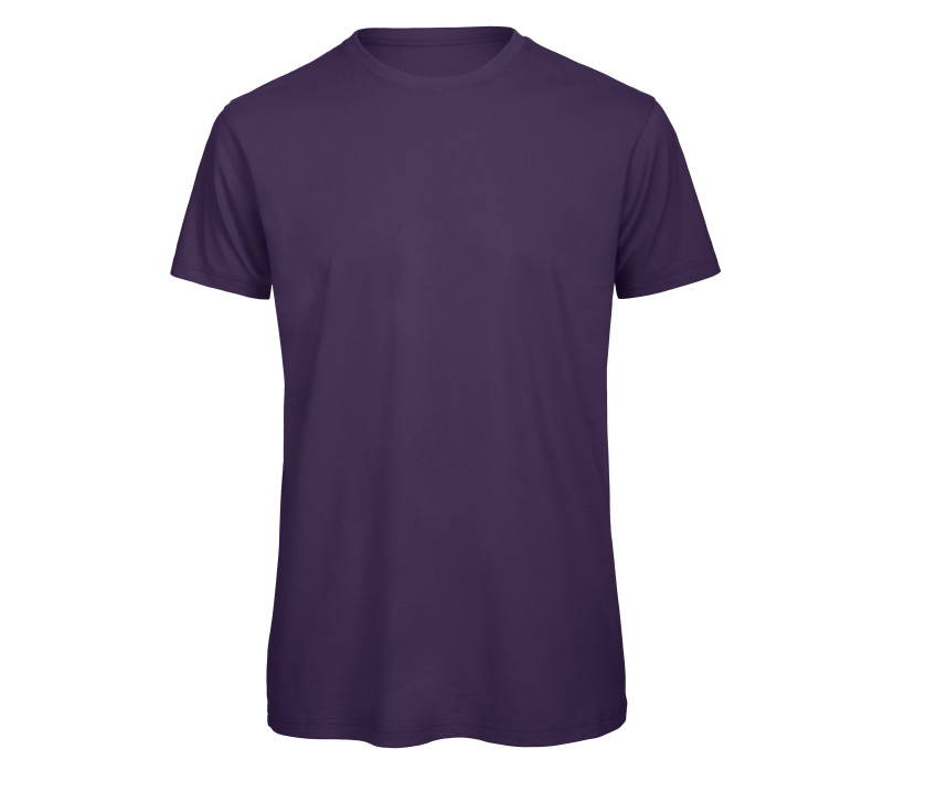 Tee-shirt homme coton bio ou bio en conversion. Coupe cintrée. Manches courtes. Coutures latérales. Doux au toucher. Col en côtes fines. Renfort d'épaule à épaule. Surface lisse pour une impression nette et précise.