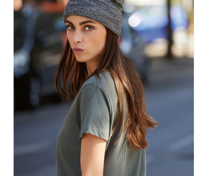 Tee-shirt femme coton bio ou bio en conversion. Coupe cintrée. Manches courtes. Coutures latérales. Doux au toucher. Col en côtes fines. Renfort d'épaule à épaule. Surface lisse pour une impression nette et précise.