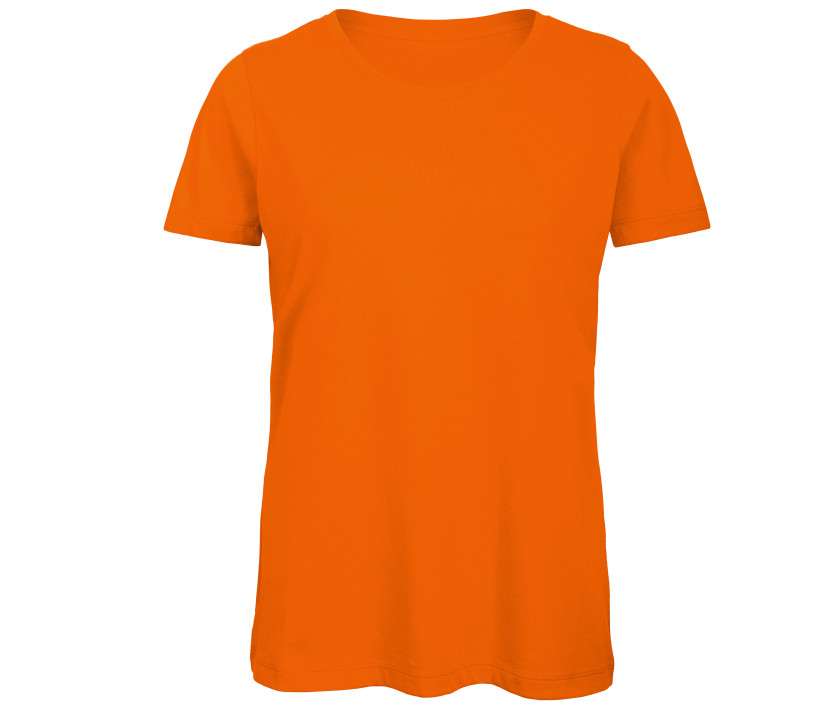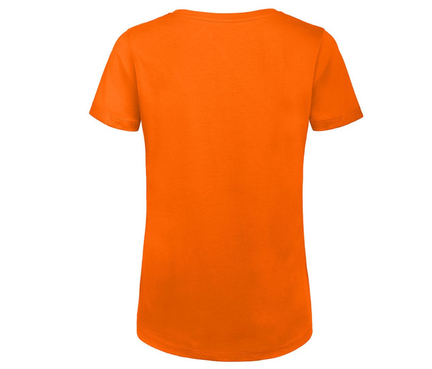 Tee-shirt femme coton bio ou bio en conversion. Coupe cintrée. Manches courtes. Coutures latérales. Doux au toucher. Col en côtes fines. Renfort d'épaule à épaule. Surface lisse pour une impression nette et précise.