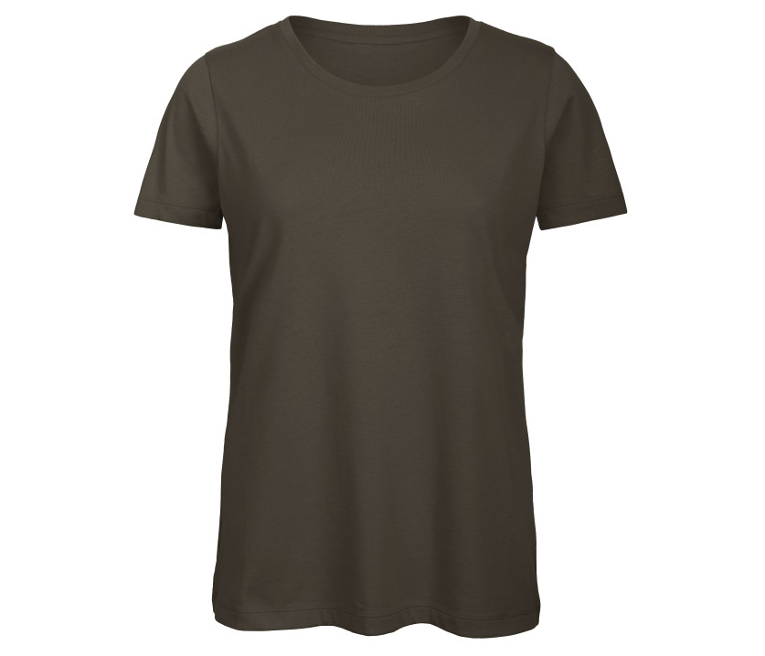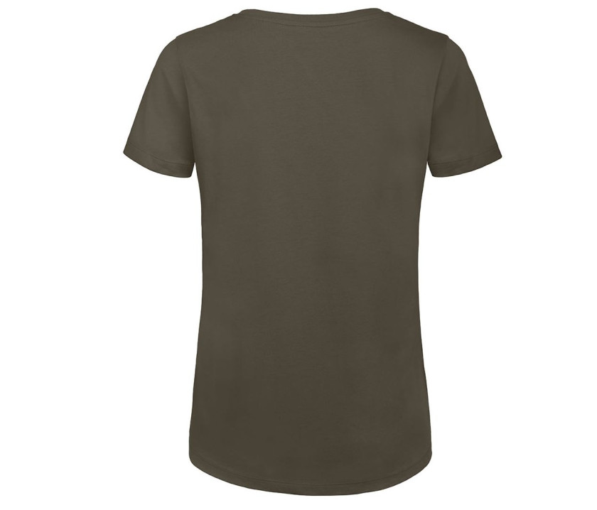 Tee-shirt femme coton bio ou bio en conversion. Coupe cintrée. Manches courtes. Coutures latérales. Doux au toucher. Col en côtes fines. Renfort d'épaule à épaule. Surface lisse pour une impression nette et précise.