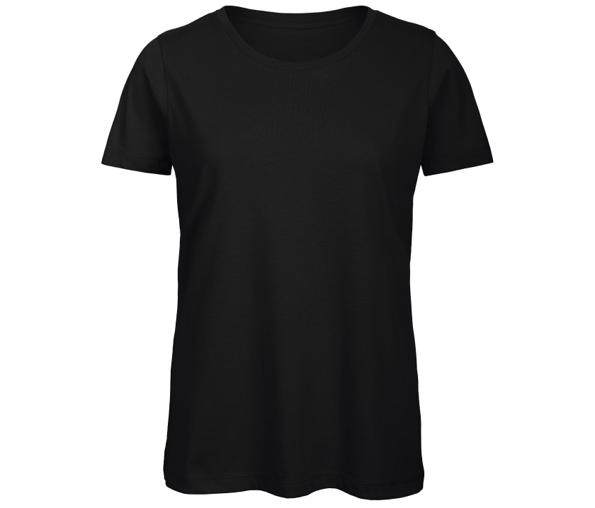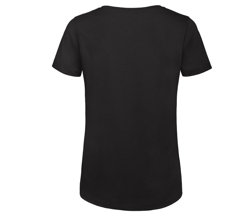 Tee-shirt femme coton bio ou bio en conversion. Coupe cintrée. Manches courtes. Coutures latérales. Doux au toucher. Col en côtes fines. Renfort d'épaule à épaule. Surface lisse pour une impression nette et précise.