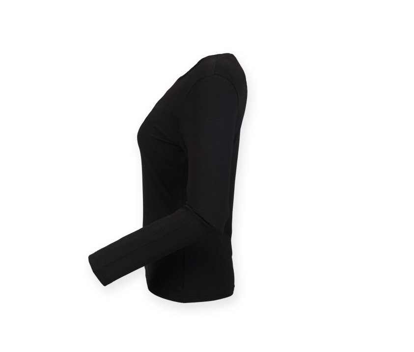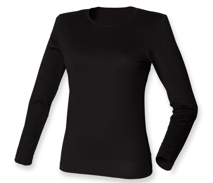 Col ras du cou. Étiquette détachable. Coupe longue moderne. Double surpiqûre aux manches et en bas. Toucher doux.