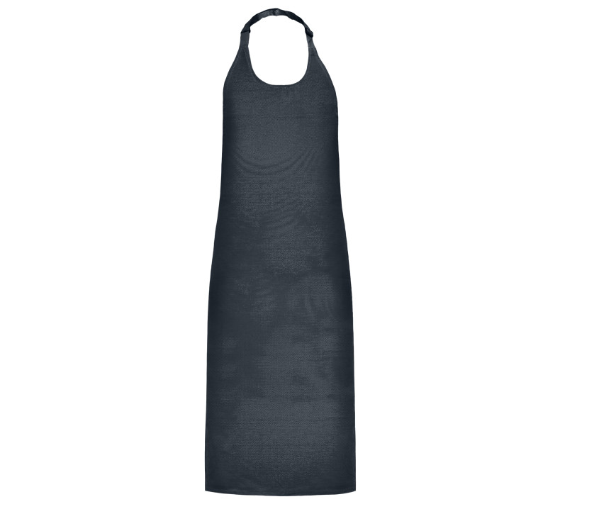 Tablier sans poche, hauteur 90cm, largeur 75cm. Boucle plastique pour ajuster l'anse supérieure. Lavage 60°(étiquette 30° erronée).