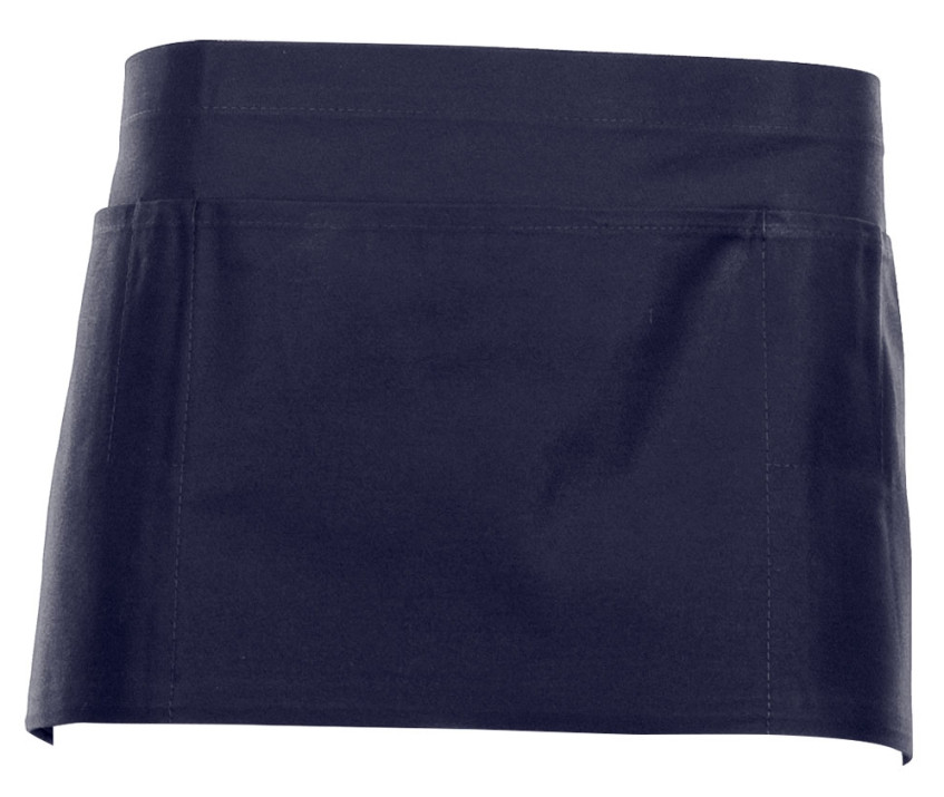 - Tablier barman court. Hauteur : 25 cm. Largeur : 70 cm. Multipoches. Lavage 60°.