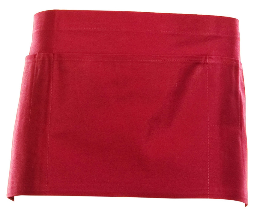 - Tablier barman court. Hauteur : 25 cm. Largeur : 70 cm. Multipoches. Lavage 60°.