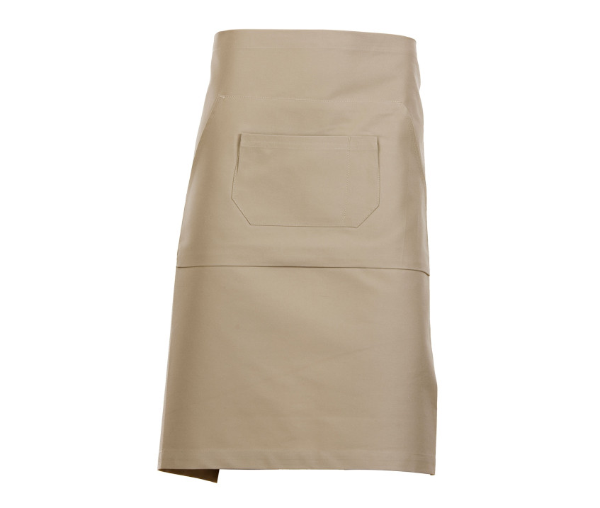- Tablier barman mi-long. Hauteur : 58 cm. Largeur : 90 cm. Multipoches. Lavage 60°.