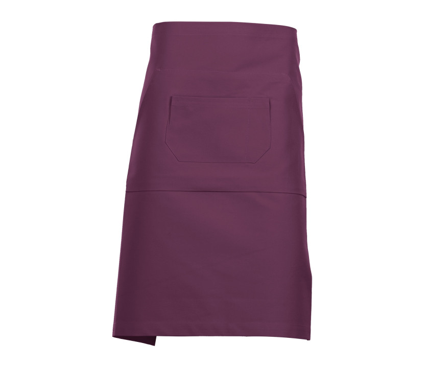 - Tablier barman mi-long. Hauteur : 58 cm. Largeur : 90 cm. Multipoches. Lavage 60°.