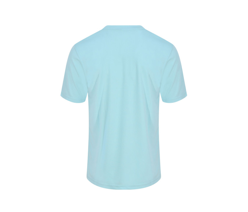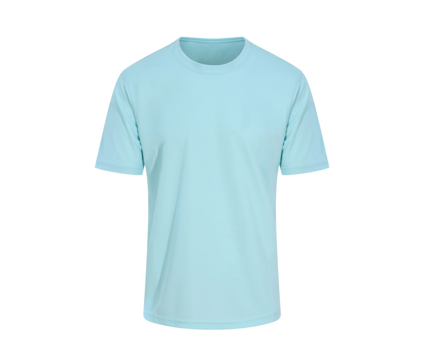 Tee-shirt homme en 100% polyester Neoteric™, matière légère texturée avec propriétés respirantes et facilitant l'évaporation de la transpiration. Coupe sportive. Manches droites. Bande de propreté au cou. Double coutures. Col rond. Étiquette détachable. Matière stretch. Protection UPF 30+UV. Certifié norme EN 13758-1.