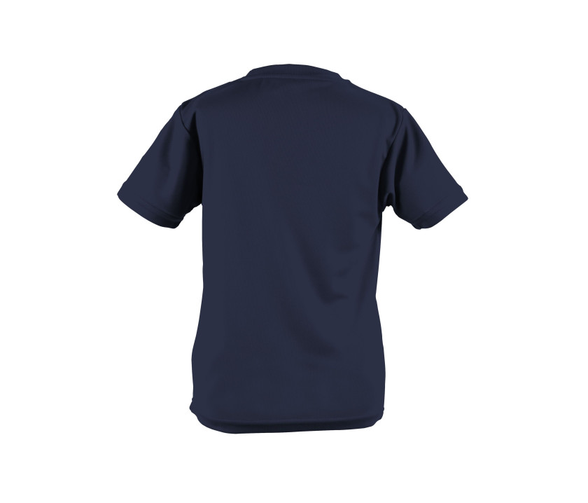 T-shirt enfant en 100% polyester Neoteric™, matière légère texturée avec propriétés respirantes et facilitant l'évaporation de la transpiration. Coupe décontractée. Manches droites. Bande de propreté au cou. Col rond. Étiquette détachable. Protection UPF 30+UV. Matière stretch.