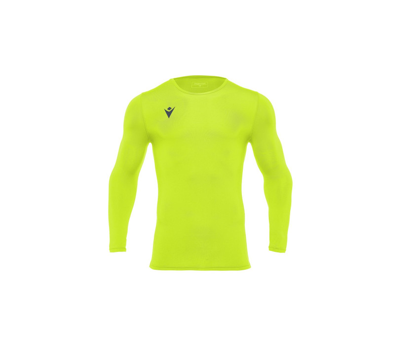 T-shirt "sous-vêtement" manches longues de football en tissu Perform. Trame en jersey avec élasthanne qui garantit légèreté et souplesse. Séchage facile. Coutures plates. Empiècements filet sur les côtés.