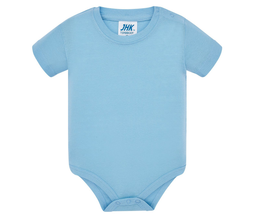 Boutons pression aux épaules et à l'entrejambe. Col en bords côte 1x1. Étiquette détachable.