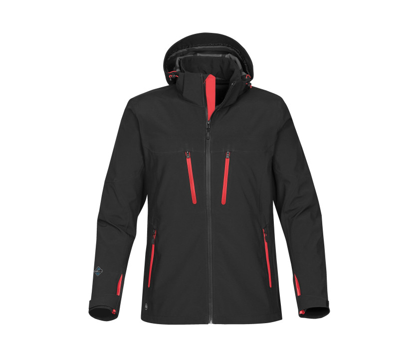 - 3 couches. Coutures scellées. Zips étanches. Capuche détachable et ajustable avec cordon de serrage.