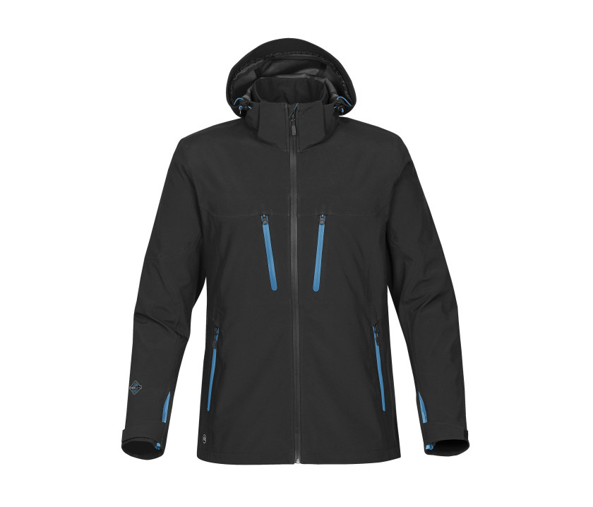 3 couches. Coutures scellées. Zips étanches. Capuche détachable et ajustable avec cordon de serrage. Taille ajustable. Dos plus long. 2 poches poitrine. Coudes articulés. Poignets réglables avec gousset. Imperméabilité 10,000mm. Respirabilité 3,000g/m². +5°C à -10°C.