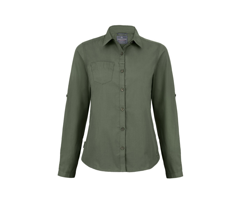 Tissu résistant aux piqûres d'insectes. Protection solaire (UPF 40). Coupe décontractée. Entretien facile. 1 poche poitrine.
