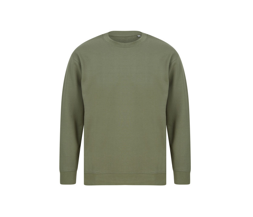 Sweatshirt unisexe à la coupe décontractée. Manches droites. Épaules tombantes. Sweat plus long au dos. Col rond et poignets en bords côte. Surpiqûres ton sur ton. Sans étiquette de marque. Bande de propreté au col.