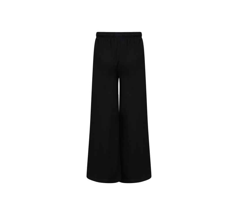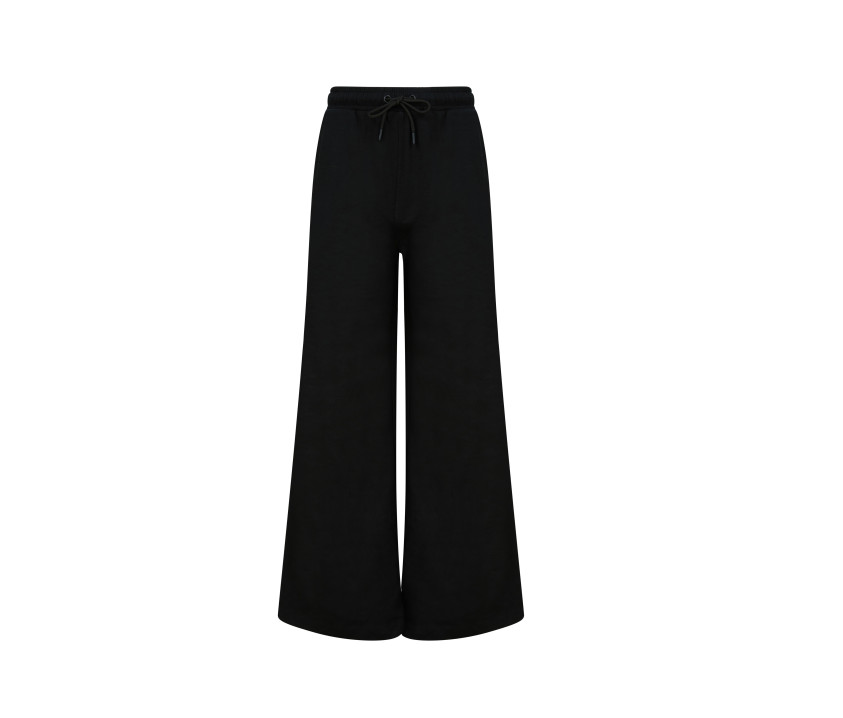 Pantalon de jogging femme jambes larges. Taille élastiquée avec cordon de serrage rond. Intérieur gratté. Poches latérales. Surpiqûres ton sur ton. Sans étiquette de marque.