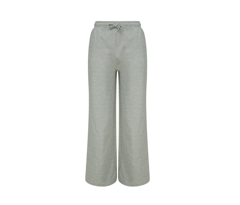 Pantalon de jogging femme jambes larges. Taille élastiquée avec cordon de serrage rond. Intérieur gratté. Poches latérales. Surpiqûres ton sur ton. Sans étiquette de marque.