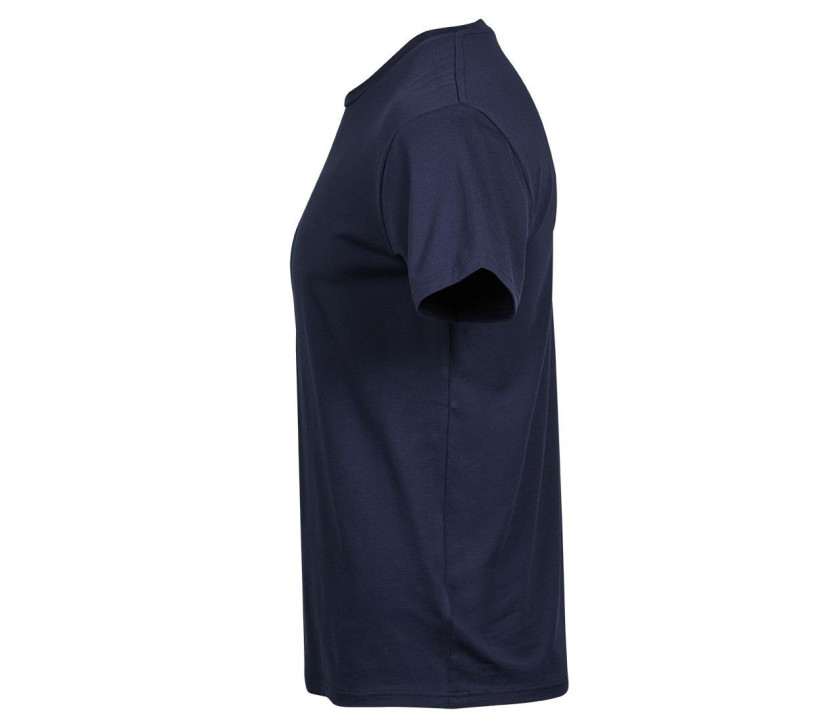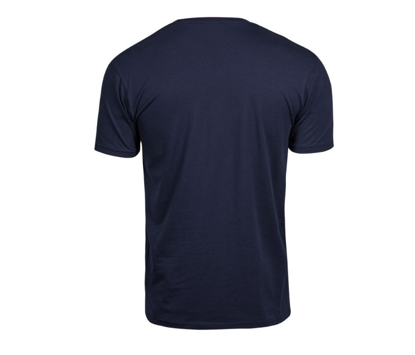 Coupe classique. Col en bords côte doublé. Double couture. Lavé aux enzymes. Pré-rétréci.