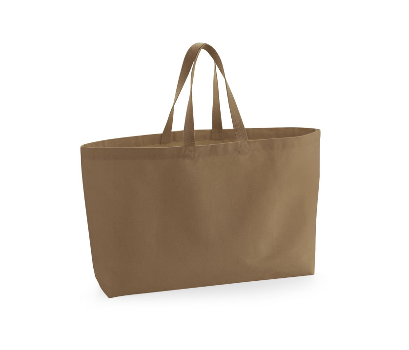Coton doublé. Anses souples de 61cm. Peut se porter à la main ou sur l'épaule. Surface de marquage : 54x33cm.