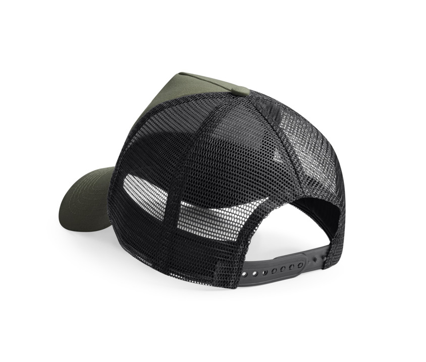 5 panneaux. Visière préformée. Ajustable par patte en plastique rétro Snapback. Étiquette détachable TearAway. Tour de tête : 56cm. Visière en polyéthylène recyclé, un matériau résistant, léger et flexible.