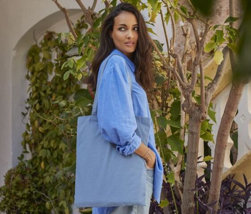 Teinture naturelle écoresponsable. Peut se porter à la main ou sur l'épaule. Étiquette détachable TearAway. La teinture s'estompera joliment avec le temps. De légères variations de couleur sont possibles en raison du processus de teinture naturelle. Surface d'impression : 33x36cm. Longueur des anses : 67cm.