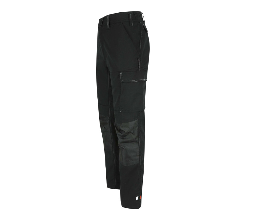 Pantalon multi-poches, extensible dans les deux sens. 2 poches latérales. Poche GSM dans la poche sur la cuisse. 2 poches sur les cuisses. Poche mètre. Poche pour stylo. 2 poches arrière. Poches au niveau du genou. Ourlet à rallonge. Revêtement de surface hydrofuge. Impression réfléchissante sur la poche cuisse. Certifié EN ISO 13688:2013 et EN ISO 14404:2004+A1:2010 Type 2 Level 0 en combinaison avec la protection du genou HEROCK®.