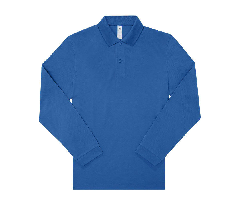 Polo manches longues 180 - Maille piquée. Coutures latérales avec fentes et bandes de propreté. Plaquette 2 boutons renforcée ton sur ton.