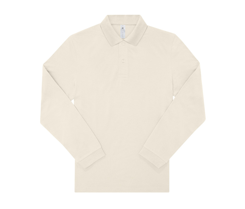 Polo manches longues 180 - Maille piquée. Coutures latérales avec fentes et bandes de propreté. Plaquette 2 boutons renforcée ton sur ton.