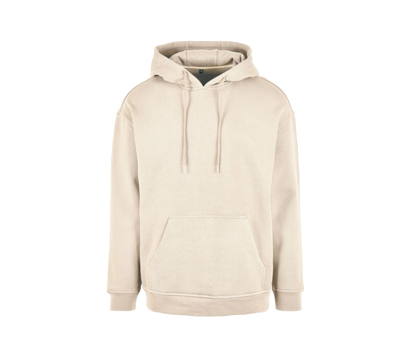 Coupe très ample. Manches droites. Capuche ajustable par cordons. Poche kangourou. Bord côte épais aux poignets et à la taille. Puce de taille au col.