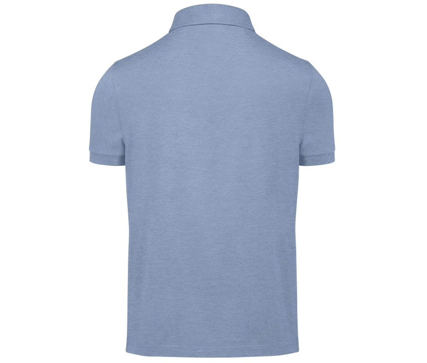 Plaquette renforcée 2 boutons. Col et poignets en bord côte 1x1. Maille piqué. Coutures latérales avec fentes et bande de propreté Herringbone. Coutures aux épaules et bande de propreté au col.