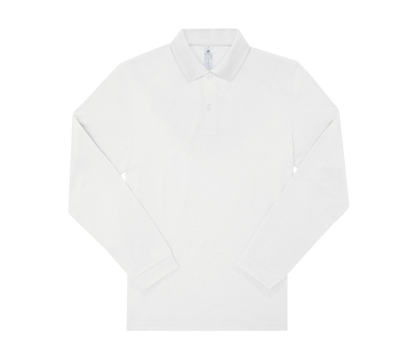 Polo homme manches longues 210 - Plaquette renforcée 2 boutons. Col et poignets en bord côte 1x1. Maille piquée.