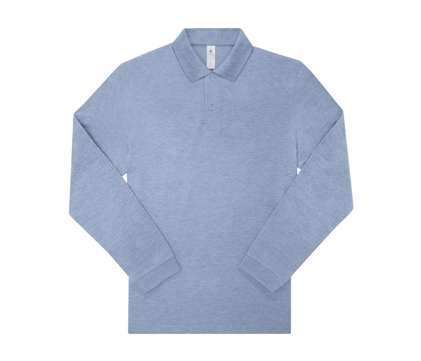 Polo homme manches longues 210 - Plaquette renforcée 2 boutons. Col et poignets en bord côte 1x1. Maille piquée.