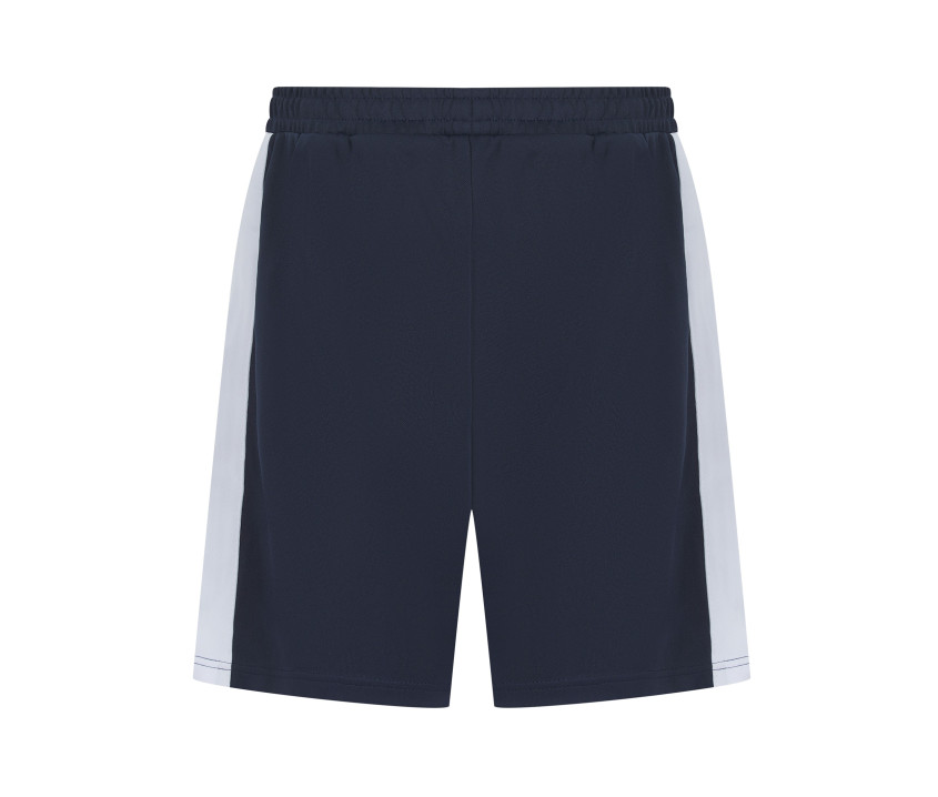 Short de sport - Taille élastiquée et cordon de serrage intérieur. Panneaux latéraux contrastés. Poches zippées sur les coutures latérales.