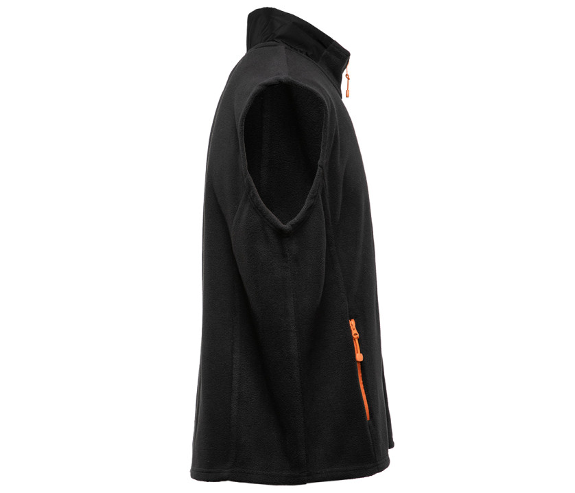 Fermeture zippée contrastée. Bande de propreté en chevron. Poches zippées avec tirette en plastique.