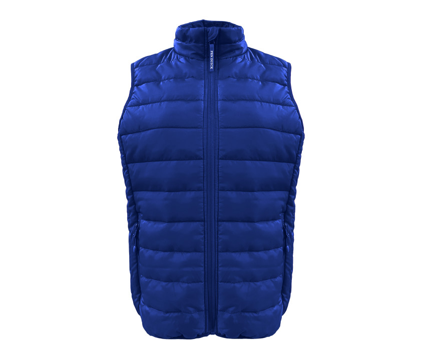 Bodywarmer femme en polyester recyclé - Fermeture zippée avec tirette. Poches latérales avec tirettes en plastique. Poche intérieure zippée.