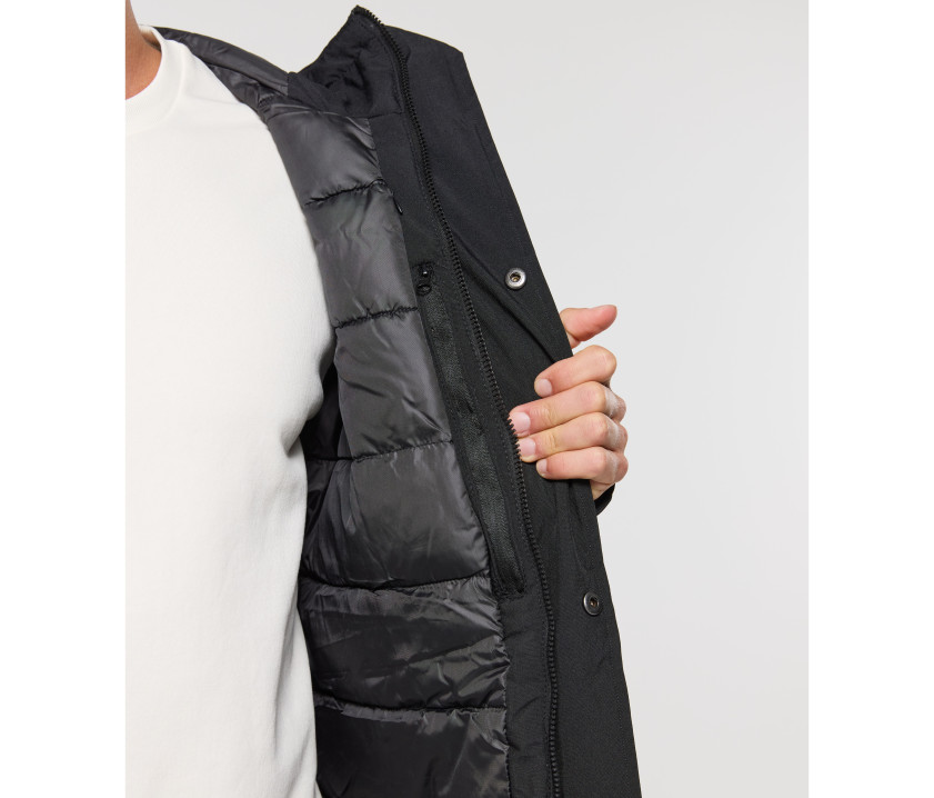 6 poches extérieures. Fermetures Éclair® imperméables. Pour une ouverture et une fermeture en toute simplicité, assurez-vous que l'insert est correctement positionné sur les deux curseurs. Poche intérieure. Accès marquage : coeur et dos. Imperméabilité : 4000-5000mm. Ouatine et doublure 100% recyclées.