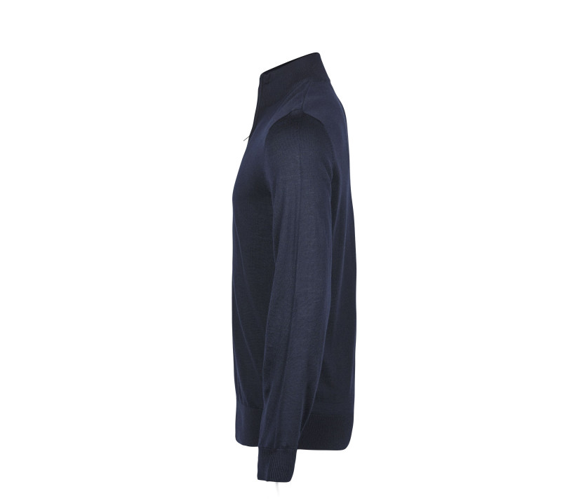 Jauge 14. Coupe ajustée élégante. Lavable à 40°C (programme laine). Fil de qualité italienne Merino. Col zippé. Bord côte aux poignets et à la taille.