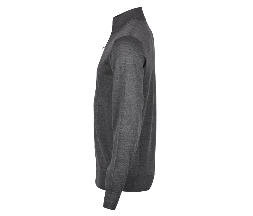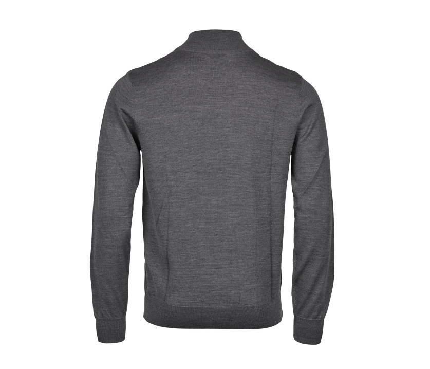 Jauge 14. Coupe ajustée élégante. Lavable à 40°C (programme laine). Fil de qualité italienne Merino. Col zippé. Bord côte aux poignets et à la taille.
