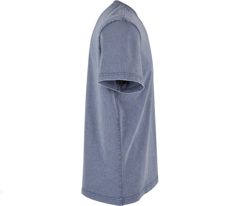 Coupe classique. Col rond en bord côte. Tee-shirt décoloré à l'acide. Manches droites. Coutures latérales.