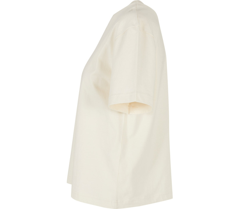 Coupe oversize décontractée. Épaules tombantes. Col ras-du-cou en bord côte. Sans étiquette de marque, uniquement une puce de taille.
