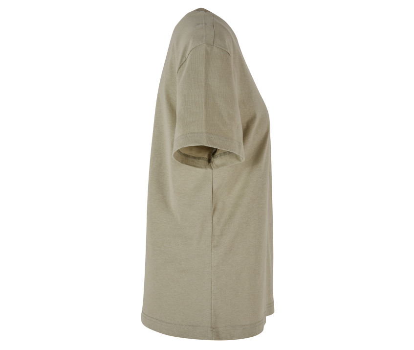 Coupe oversize décontractée. Épaules tombantes. Col ras-du-cou en bord côte. Sans étiquette de marque, uniquement une puce de taille.